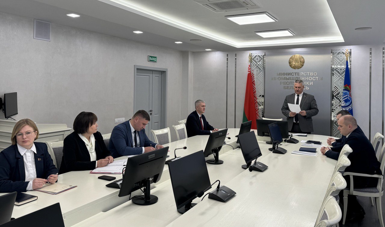Заседание аттестационной комиссии проходит под председательством первого заместителя Министра промышленности Беларуси Андрея Конюшко, а также с участием руководства ведомства, председателя Белорусского профсоюза работников отраслей промышленности «БЕЛПРОФМАШ» Валерия Курсевича.